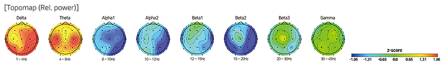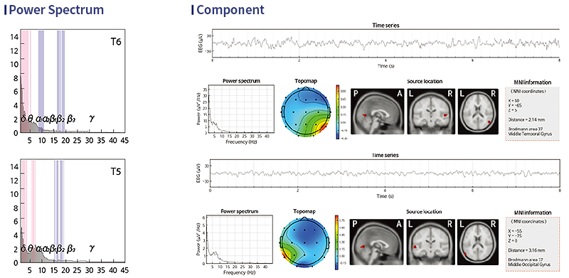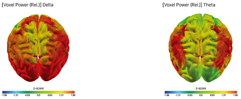 เมื่อเปรียบเทียบกับคนทั่วไป พบว่าคลื่นสมองช้า (คลื่นเดลต้าและคลื่นทีตา) มีพื้นที่กว้างขึ้นใน Power Spectrum และ Component โดยไม่มีจุดสูงสุดที่เด่นชัดร่วมกัน